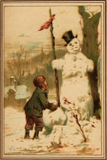 Tout à coup il eut besoin de son mouchoir : il le chercha et se souvint enfin qu’il l’avait laissé flotter à la perche de son homme de neige. Craignant d’être grondé, Rodolphe se glissa hors de la maison pour aller chercher son mouchoir. Le chemin est bien pénible, mais enfin le petit garçon atteint son homme de neige. Le chapeau qu’il lui avait mis avait été emporté au loin, mais le drapeau-mouchoir flottait encore au vent.