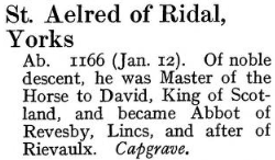 Aelred was a prolific writer, but most have been translated since 1925 and are not available in the public domain. We do have his lives of Saints Ninian and Kentigern, and we celebrate Saint Kentigern tomorrow.