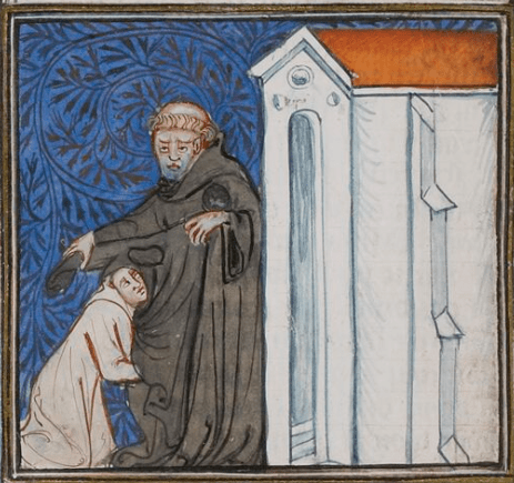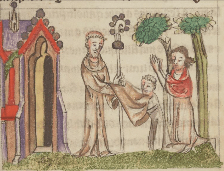 – France, Paris. Bibliothèque nationale de France, Département des manuscrits, Français 24947: f.181 – Sainte Euphrosyne d’Alexandrie prenant l’habit