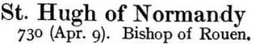 9 April – Saint Hugh of Rouen Posted bymagistrahildegard9 April 20228 April 2026Posted inSanctoraleTags:8C, Bishop, France, Monk Cathédrale Notre-Dame de Bayeux The Book of Saints Modern Hagiography Roman Martyrology La vie des saints Medieval Hagiography BHL, Supplement Acta Sanctorum Art & Architecture Wikimedia Commons Saints and their Attributes Saints and their Emblems Music Cantus: A Database for Latin Ecclesiastical Chant Share this: Share on X (Opens in new window) X Share on Facebook (Opens in new window) Facebook Like Loading... Related