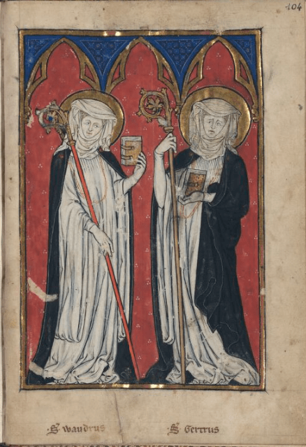 – Sainte Wautrude et sainte Gertrude (France, Paris. Bibliothèque nationale de France, Département des manuscrits, NAF 16251 f.104)