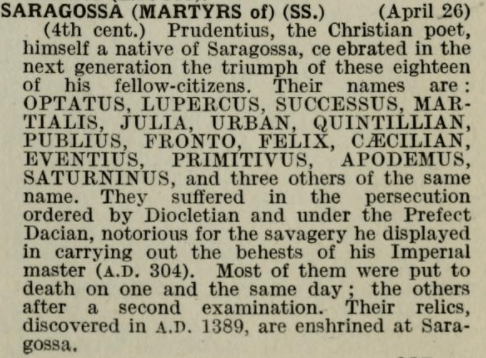 Acta Sanctorum – Engratia, Eighteen Martyrs including Faustus
