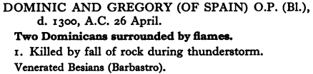 26 April – Blessed Dominic and Blessed Gregory, of Aragón Posted bymagistrahildegard26 April 202226 April 2025Posted inSanctoraleTags:13C, Dominicans, Spain Modern Hagiography Short Lives of the Dominican Saints Art & Architecture Index of Medieval Art Saints and their Attributes Share this: Click to share on X (Opens in new window) X Click to share on Facebook (Opens in new window) Facebook Like Loading... Related