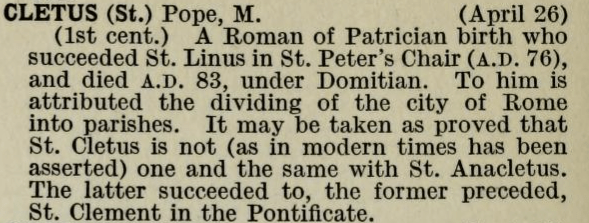Sanctorale Catholicum – Saint Cletus.