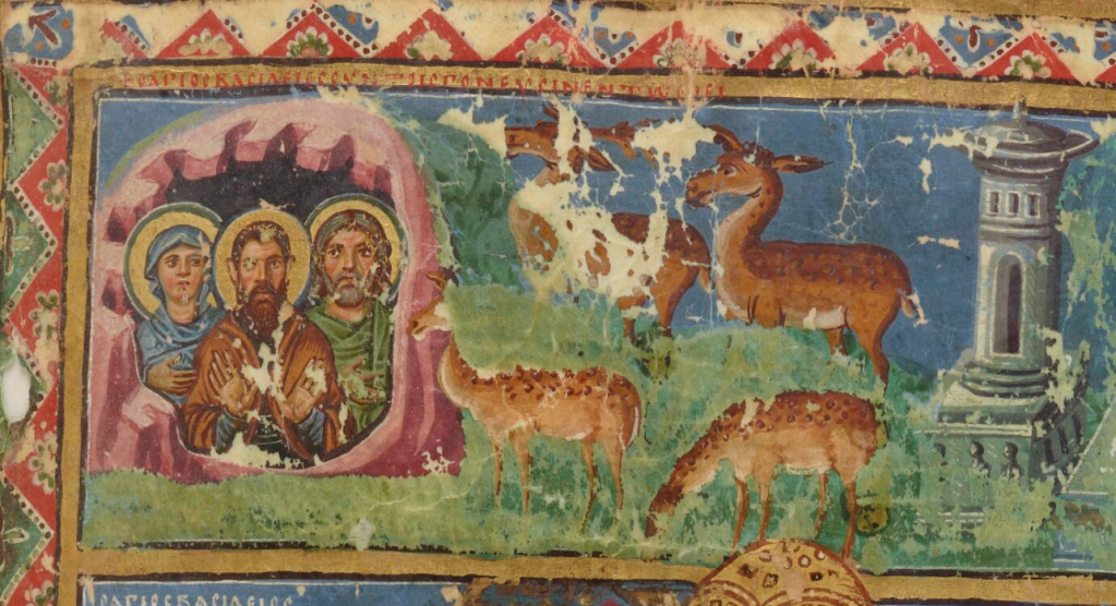 30 May – Saint Emmelia of Caesarea Posted bymagistrahildegard30 May 202230 May 2025Posted inSanctoraleTags:4C, Mother, Turkey Saint Basile le Grand et ses parents réfugiés dans une grotte (France, Paris. Bibliothèque nationale de France, Département des manuscrits, Grec 510 f.104) Les Images De Tous Les Saincts et Saintes de L’Année The Book of Saints Modern Hagiography Roman Martyrology Sanctorale Catholicum Dictionary of Saintly Women A Saint among Saints Two poems by Aubrey de Vere Medieval Hagiography Acta Sanctorum Art & Architecture Index of Medieval Art, also Portail Biblissima Share this: Click to share on X (Opens in new window) X Click to share on Facebook (Opens in new window) Facebook Like Loading... Related