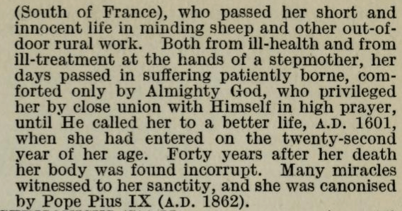 Life of Saint Germaine Cousin in a Catholic Reader.