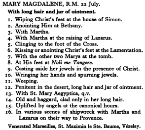 A gallery of photos accompanying the Wikipedia entry on Mary Magdalene (click on the first image to start)