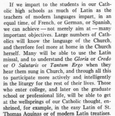 “Let’s Talk Some More about Latin – for Catholic High Schools – I,” by George E. Ganss in The Catholic School Journal 49 (1949).