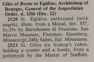 Post-Biblical Saints Art Index, including artworks listed under Saint Giles of Rome