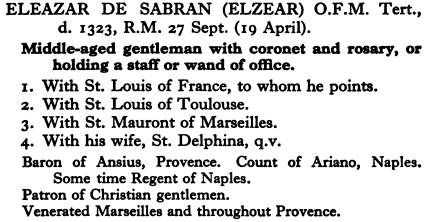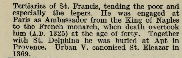 Martyrologium Romanum – Saint Elzéar (27 September) & Blessed Delphine (26 November)