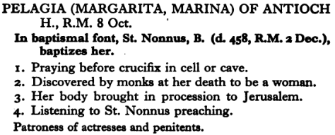 Martyrologium Romanum (identified as the Saint Pelagia of Antioch who was a Virgin and Martyr)