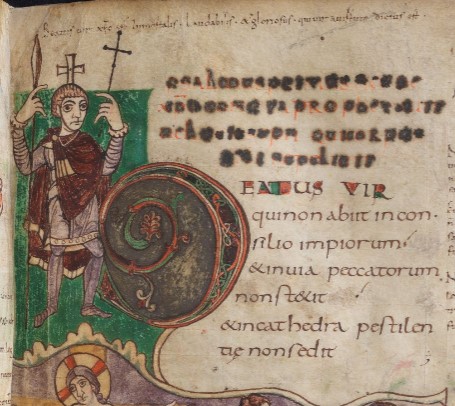 Text: Beatus vir qui non abiit in consilio impiorum, et in via peccatorum non stetit, et in cathedra pestilentiae non sedit;