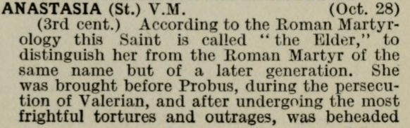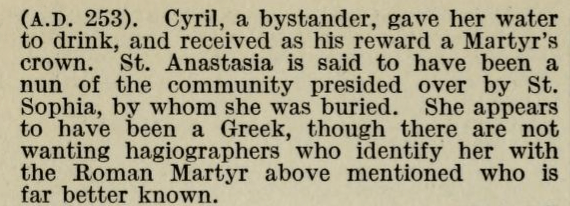 18C Libro del Compendio della Vita di tutti Santi (more likely Saint Anastasia of 25 Decmber; although labeled a Virgin, Saint Anastasia the Elder was the Virgin; the Younger a matron)