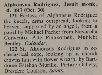 for a painting actually of Saint Augustine, which is actually illustrating the next day’s saints (Wolfgang). Bentley actually uses the painting by Zurbaran (above) to accompany Saint Alphonsus’s entry.