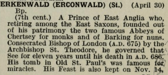 Saint Erkenwald (translation, about)