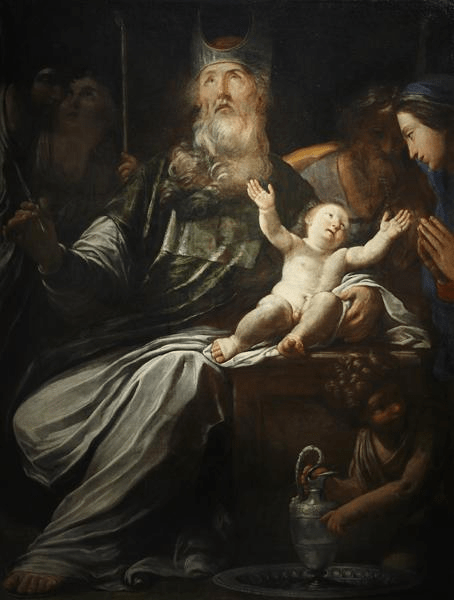 On the late 12C Verdun Altar (see also) in the Abbey of Klosterneuburg, between the circumcisions of Isaac and Samson.