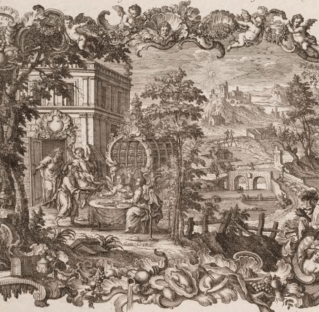 Cap. 18 V.2, 4, 9, 10 Tres viri – sub arbore – cumque comedissent, dixerunt ad Abraham: habebit filium Sara – Sara risit post ostium.