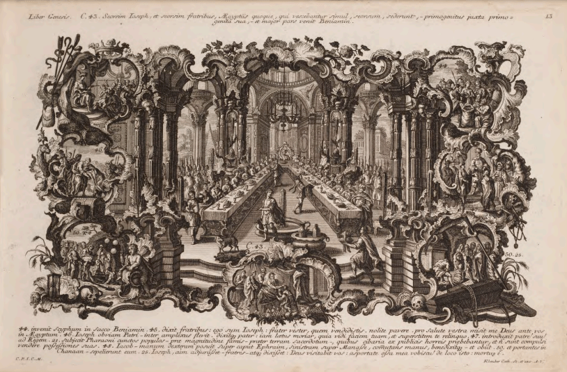 Above C.43 [V.32] Seorsum Ioseph, et seorsim fratribus, Aegyptiis quoque, qui vescebantur simul, seorsum, [V.33] sederunt, – primogenitus juxta primogenita sua, – [V.34] et major pars venit Beniamin.