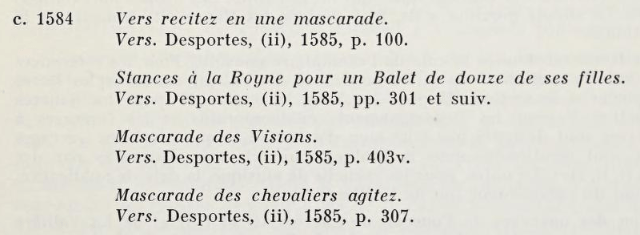 Ballets with Verses written by Philippe Desportes ca. 1584
