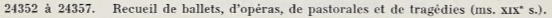 Ballets, opéra et autres ouvrages lyriques par ordre chronologique depuis leur origine, avec une table alphabétique des ouvrages et des auteurs par le duc de La Vallière (1760).