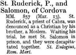 13 March – Saint Roderick Posted bymagistrahildegard13 March 202413 March 2026Posted inSanctoraleTags:9C, Priest, Spain Heiliger Rodrigo by Bartolomé Esteban Murillo (1650/55) SAN RODRIGO, MARTYR [Material gráfico] : A 13 de Marzo The Book of Saints Modern Hagiography Bibliotheca Sanctorum Martyrologium Romanum Roman Martyrology Lives of the Saints by Sabine Baring-Gould. Medieval Hagiography BHL Acta Sanctorum Art & Architecture Saints and their Attributes Saints and their Emblems Share this: Share on X (Opens in new window) X Share on Facebook (Opens in new window) Facebook Like Loading... Related