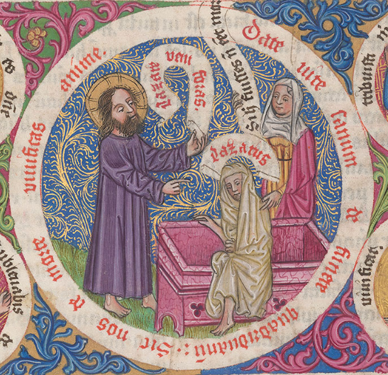 DATE UITE SANUM DE FUNERE QUADRIDUANUM. SIC NOS DE MORTE UIUIFICAS ANIME
