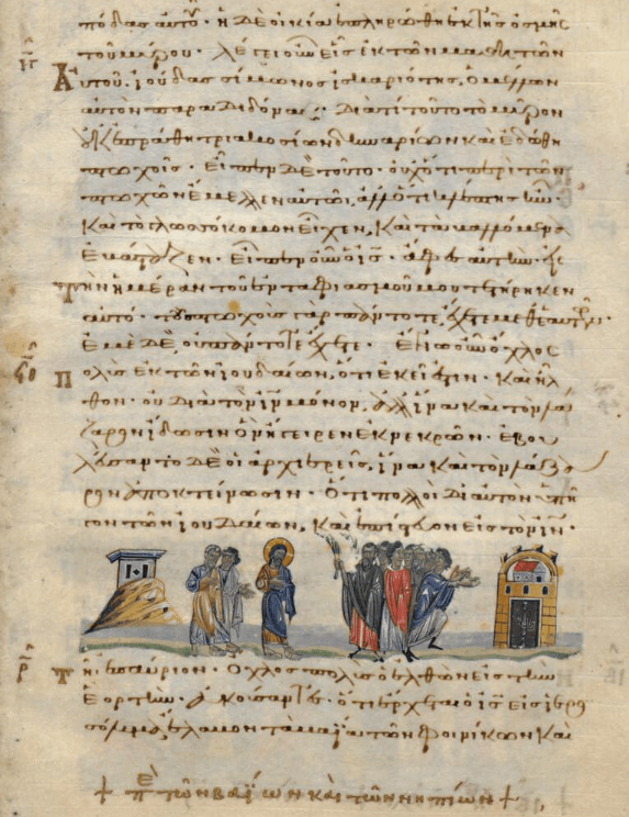 To the right, Priests Conspiring against Lazarus
