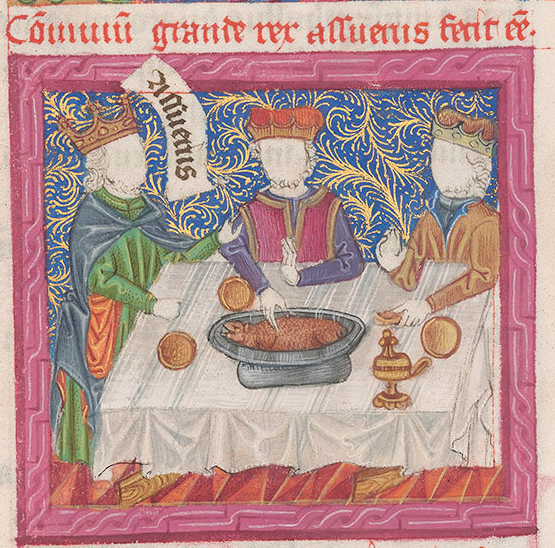 REX SEDET IN CENA TURBA CUNCTIS DUODENA. SE TENET IN MANIBUS SE CIBAT IPSE CIBUS