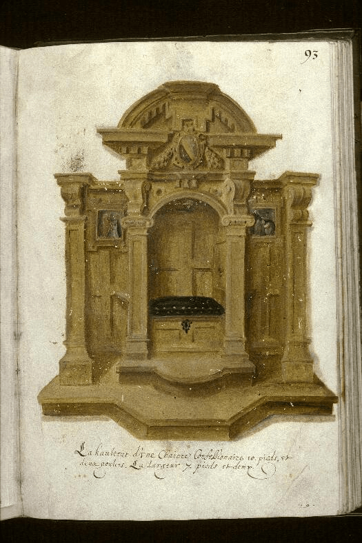 Recueil dominicain du couvent Sainte-Catherine-de-Sienne de Douai, Folio 93r Posted bymagistrahildegard25 April 202423 June 2024Posted inHistory of Art Douai. Bibliothèque municipale, Ms. 1170, Folio 93r La hauteur d’une Chaiere Confessionaire 10.pieds, etdeux poulces. La largeur 7.pieds et demy. Share this: Click to share on X (Opens in new window) X Click to share on Facebook (Opens in new window) Facebook Like Loading... Related