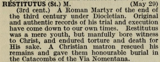 Acta Sanctorum (scan is missing two pages, at least one page of Saint Resitutus’s Acts)