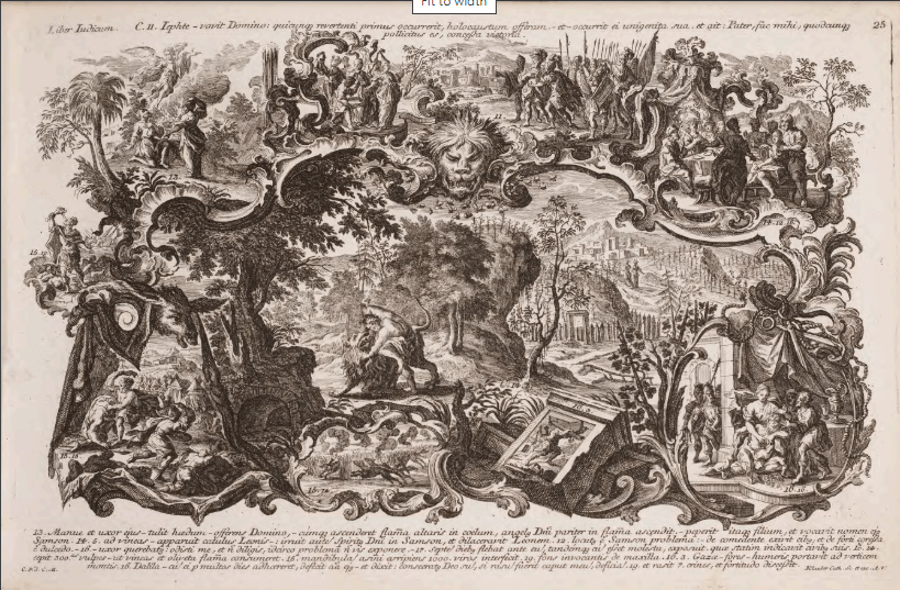 Below 13. Manue et uxor ejus – tulit haedum – offerens Domino, – cumque ascenderet flamma altaris in coelum, angelus Domini pariter in flamma ascendit. – peperit itaque filium, et vocavit nomen eius Samson. 14. 5. ad vineas – apparuit catulus Leonis – : irruit autem Spiritus Domini in Samson, et dilaceravit Leonem. 12. locutus est Samson problema: – de comedente exivit cibus, et de forti egressa est dulcedo. – 16. – uxor quaerebatur: odisti me, et non diligis, idcirco problema non vis exponere. – 17. septem diebus flebat ante eum tandemque cum esset molesta, exposuit. quae statim indicavit civibus suis. 15. 4. cepit 300. vulpes – ut vineas et oliveta flamma consumeret. 15. mandibulam asini arripiens 1000. viros interfecit. 19. fons invocantis de maxilla. 16.3 Gazae – fores – humeris portavit ad verticem montis. 16. Dalila – cum ei per multos dies adhaereret, defecit anima eius – et dixit: consecratus Deo sum, si rasum fuerit caput meum, deficiam. 19. et rasit 7. crines, et fortitudo discessit.