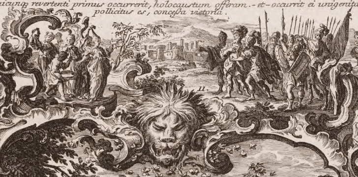 C.11 V.30 Jephte – made [a vow] to the Lord: V.31 Whosoever shall first meet, I offer a holocaust. – V.34 his only daughter. V.36 And she said: Father, do unto me whatsoever thou hast promised, victory revenge.