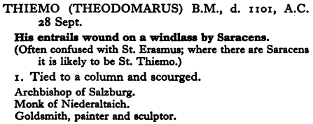 28 September – Saint Thiemo Posted bymagistrahildegard28 September 202428 September 2025Posted inSanctoraleTags:11C, Austria, Martyr Martyrium des seligen Thiemo Bavaria Sancta, Augsburg, Staats- und Stadtbibliothek — 2 Th L 65 Thiemo, Erzbischof von Salzburg, Heiliger Modern Hagiography Bibliotheca Sanctorum Wikipedia Entry Medieval Hagiography BHL Act Sanctorum Art & Architecture Saints and their Attributes Saints and their Emblems Share this: Click to share on X (Opens in new window) X Click to share on Facebook (Opens in new window) Facebook Like Loading... Related