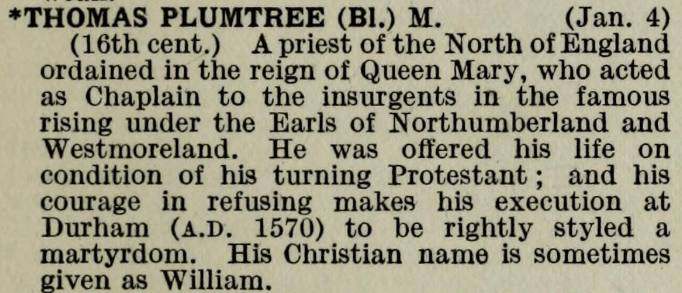 4 January – Blessed Thomas Plumtree Posted bymagistrahildegard4 January 20252 December 2025Posted inSanctoraleTags:16C, England, Martyr, Priest Ecclesiæ anglicanæ trophæa The Book of Saints Modern Hagiography A Menology of England and Wales Mementoes of the English Martyrs and Confessors for Every Day in the Year Share this: Click to share on X (Opens in new window) X Click to share on Facebook (Opens in new window) Facebook Like Loading... Related