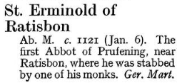 6 January – Saint Erminold Posted bymagistrahildegard6 January 20257 January 2026Posted inSanctoraleTags:12C, Germany Tomb of Saint Erminold (see also) Bavaria Sancta, Augsburg, Staats- und Stadtbibliothek — 2 Th L 65 Erminold, Heiliger The Book of Saints Modern Hagiography Bibliotheca Sanctorum Lives of the Saints by Sabine Baring-Gould. Tradition in Action Medieval Hagiography BHL, Supplementum Sancta Sanctorum Art & Architecture Prüfening Abbey Tomb (above) Saints and their Emblems Share this: Click to share on X (Opens in new window) X Click to share on Facebook (Opens in new window) Facebook Like Loading... Related