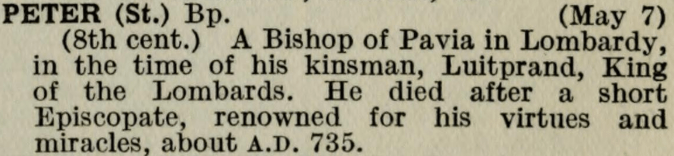 7 May – Saint Peter of Pavia Posted bymagistrahildegard7 May 20254 April 2025Posted inSanctoraleTags:8C, Bishop, Italy At the Translation of Saint Augustine’s Body from Sardinia on the Arca di S. Agostino (1362) At the Translation of Saint Augustine’s Body to Pavia on the Arca di S. Agostino (1362) Bavaria Sancta, Augsburg, Staats- und Stadtbibliothek — 2 Th L 65 The Book of Saints Modern Hagiography Roman Martyrology Medieval Hagiography Acta Sanctorum Art & Architecture Index of Medieval Art Share this: Click to share on X (Opens in new window) X Click to share on Facebook (Opens in new window) Facebook Like Loading... Related