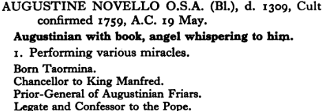 19 May – Blessed Agostino Novello Posted bymagistrahildegard19 May 202518 May 2025Posted inSanctoraleTags:13C, Augustinian, Italy Blessed Agostino Novello Triptych Medieval Hagiography BHL Acta Sanctorum Art & Architecture Index of Medieval Art Catalogo generale dei beni culturali BeWeB Europeana Post-Biblical Saints Art Index Saints and their Attributes Share this: Share on X (Opens in new window) X Share on Facebook (Opens in new window) Facebook Like Loading... Related