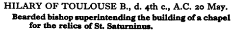 20 May – Saint Hilary of Toulouse Posted bymagistrahildegard20 May 202520 May 2025Posted inSanctoraleTags:4C, Bishop, France Châsse de saint Hilaire in Saint-Sernin in Toulouse Pièce murale : Saint Hilaire de Toulouse, vue générale Art & Architecture Châsse de saint Hilaire Pièce murale : Saint Hilaire de Toulouse in Saint-Etienne in Toulouse Saints and their Attributes Share this: Click to share on X (Opens in new window) X Click to share on Facebook (Opens in new window) Facebook Like Loading... Related