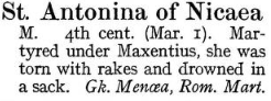 Acta Sanctorum – Antonia of Nicomedia on 4 May, Antonina of Nicaea on 1 March