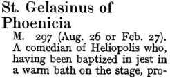 26 August – Saint Gelasinus Posted bymagistrahildegard26 August 202527 February 2026Posted inSanctoraleTags:3C, Actor, Holy Land, Martyr The Book of Saints Modern Hagiography Bibliotheca Sanctorum Lives of the Saints by Alban Butler. Great Magdalens Medieval Hagiography Chronicon Paschale Art & Architecture Saints and their Emblems Share this: Share on X (Opens in new window) X Share on Facebook (Opens in new window) Facebook Like Loading... Related
