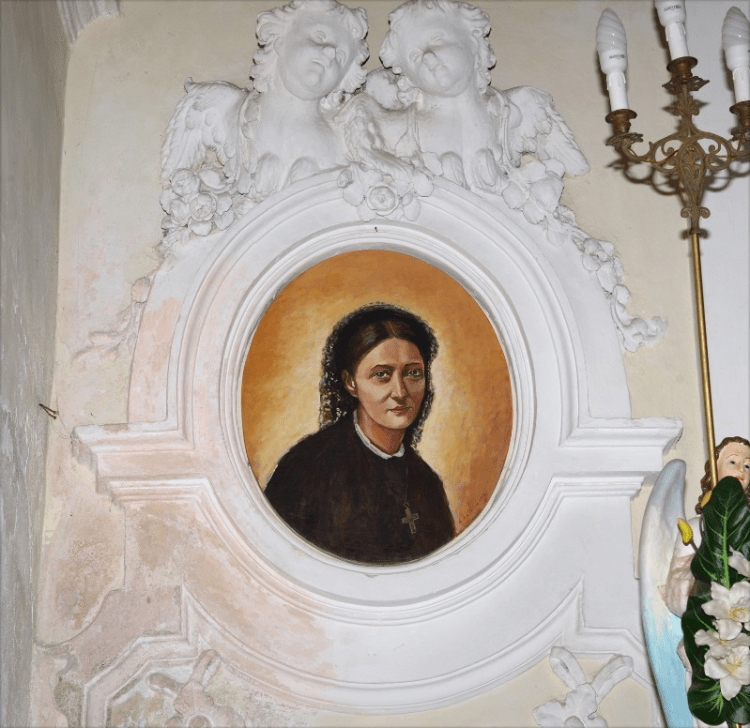 Santuario delle Ancelle del Sacro Cuore – “The body of Volpicelli is kept in the side chapel on the right. For years, it was enshrined in a bronze sculpture. Following her beatification in 2001 , her remains were moved to a gold-colored wooden urn topped with the symbol of the Sacred Heart. In 2019 , on the 10th anniversary of her canonization, her body was placed in a wooden and crystal glass coffin, covered in the saint’s clothes and with her hands and face covered in wax.”