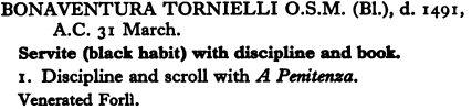 31 March – Blessed Bonaventura Tornielli Posted bymagistrahildegard31 March 202631 March 2026Posted inSanctoraleTags:15C, Italy, Servite Beato Bonaventura da Forlì Secchi C. sec. XX, Dipinto di Beato Bonaventura Tornielli Modern Hagiography Bibliotheca Sanctorum Heiligen Lexikon Art & Architecture Catalogo generale dei beni culturali Saints and their Attributes Share this: Share on X (Opens in new window) X Share on Facebook (Opens in new window) Facebook Like Loading... Related