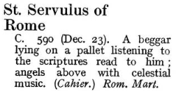 Pope Gregory the Great spoke about Saint Servulus in his homily on the Parable of the Sower (Luke 8.4-15). He also wrote about him in his Dialogues.