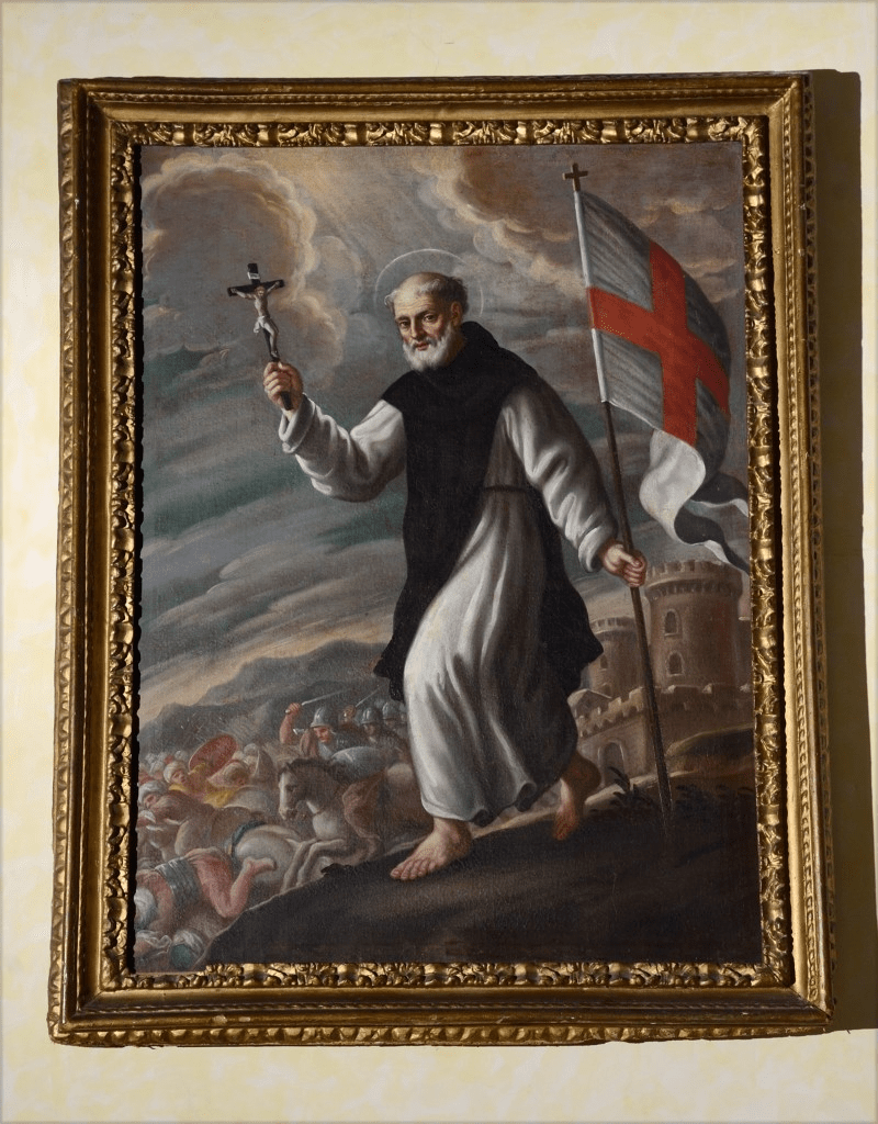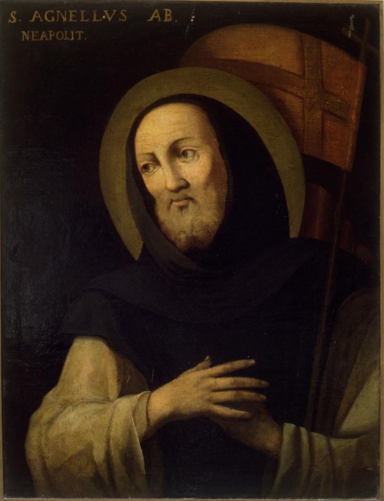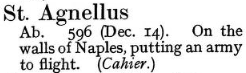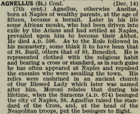 … who relies on Iconography of the Saints in Central and South Italian Schools of Painting by George Kaftal, 1965, which is not available in the public domain, but a BeWeB refined search with parameters of Campania, Napoli, and 14th & 15th Centuries turns up no such painting; the only possibility is a ca. 1600 painting by Fabrizio Santafede, cf. church website.