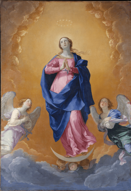 This website presents a collection of many depictions of the Blessed Virgin as the Immaculate Conception. Scroll down past the first rows and look for names you may know – Murillo, El Greco, Zurbaran, Tiepolo, Poussin, Rubens, and Bougereau.