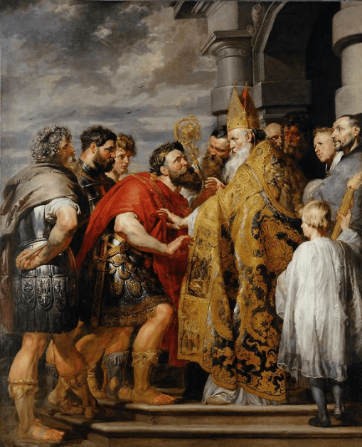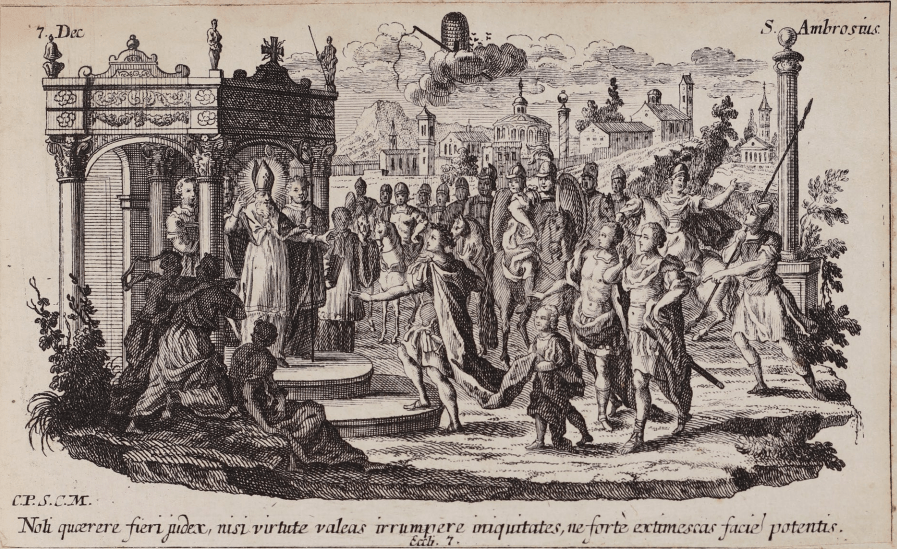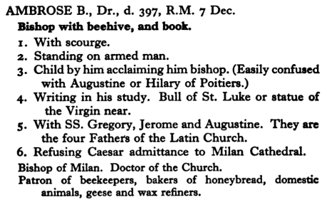 The Church of Sant’Ambrogio in Milan, originally constructed by Saint Ambrose and his eventual resting place, contains several images of Saint Ambrose.